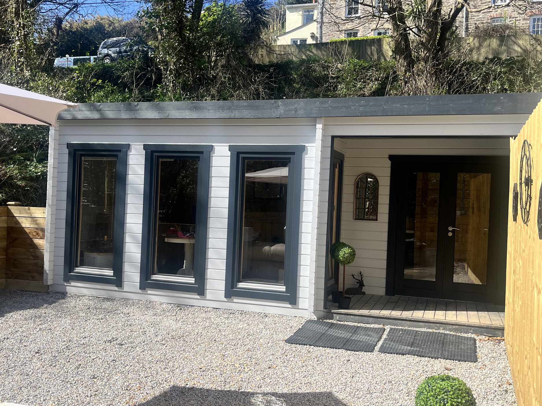Single-storey. Studio-style living space with king-size bed, kitchen, dining and sitting area. Shower room with walk-in shower, basin, WC