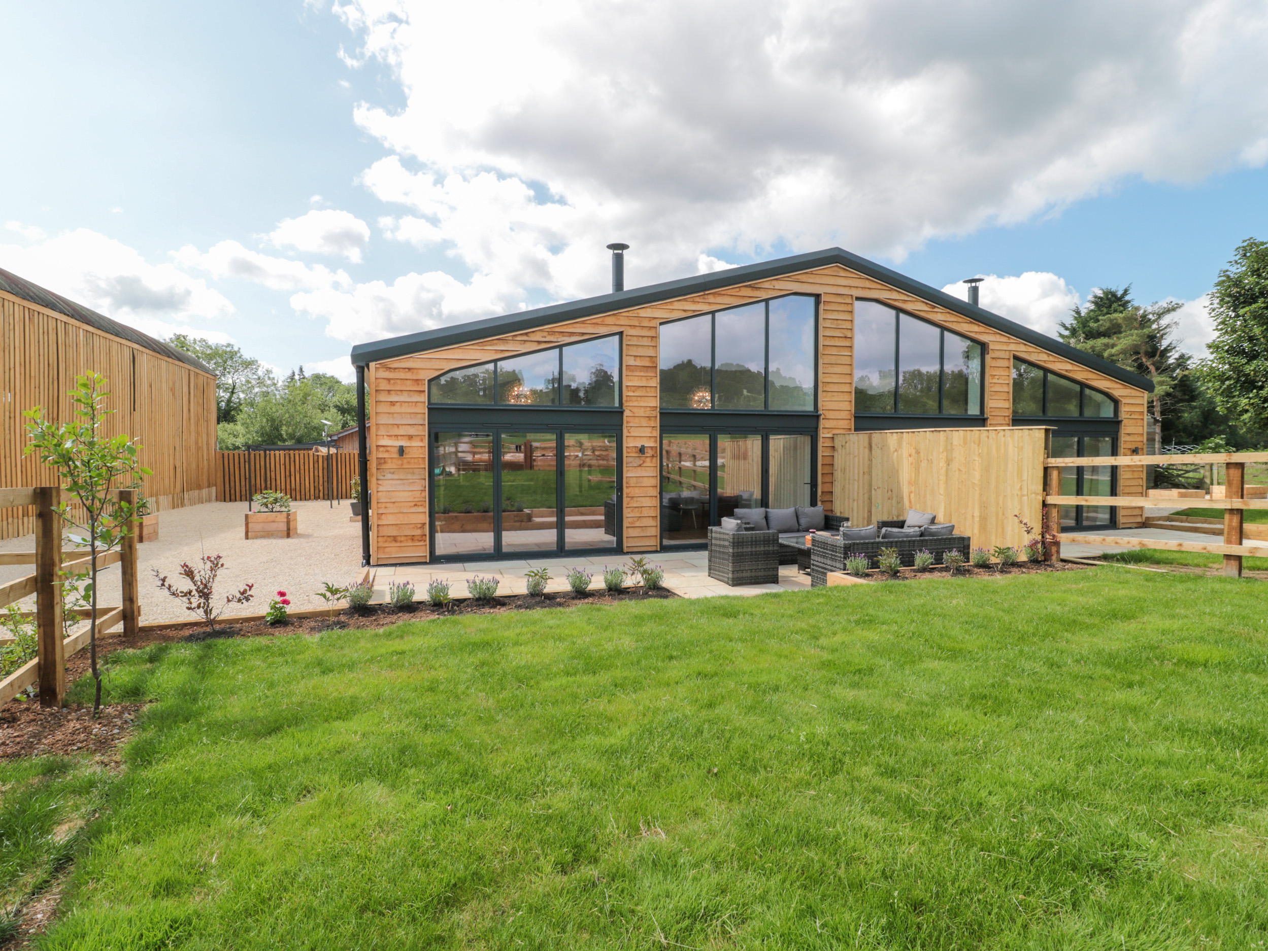 Gas central heating. Two electric ovens, induction hob, fridge/freezer, dishwasher. Smart TV and WiFi. Fuel and power inc. in rent. Bed linen and towels inc. in rent. Ample off-road parking with large gravelled courtyard with large pergola, seating and BBQ. Enclosed garden with lawn. Patio with furniture and woodfired hot tub. Three well-behaved dogs welcome, pet charge of £25 per dog applies for additional dogs. Property is located on a farm, there are chickens, pheasants, cats and dogs present, please ensure you keep the gate closed, please keep dogs on leads when on walks. Sorry, no smoking. Shop 2.4 miles, pub 1.9 miles