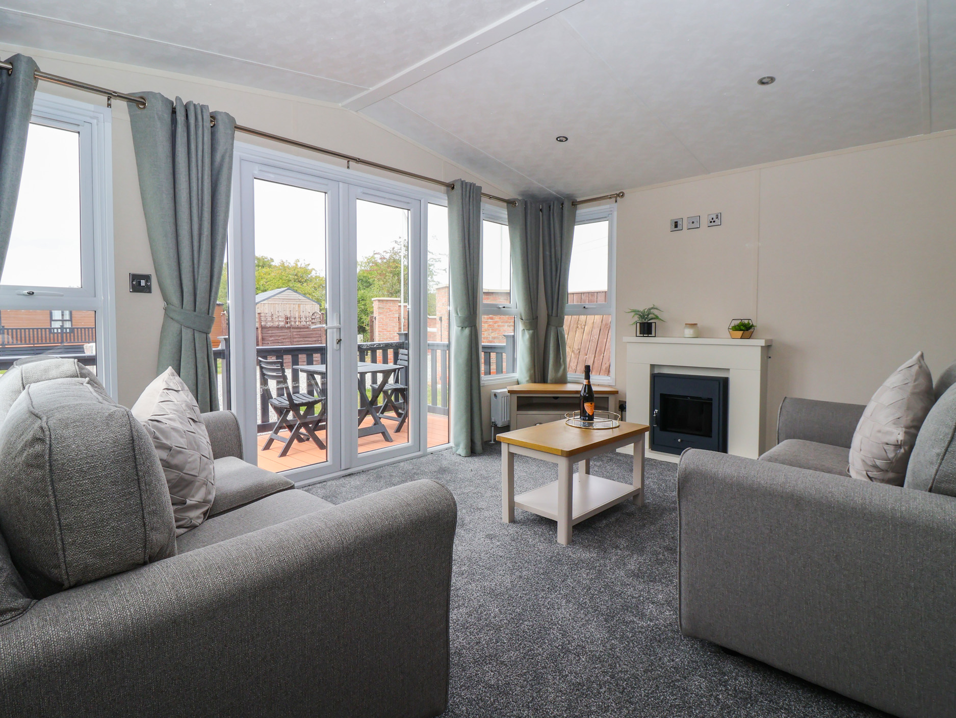 This detached single-storey lodge rests in Brandesburton, East Riding of Yorkshire and can sleep four people in two bedrooms.