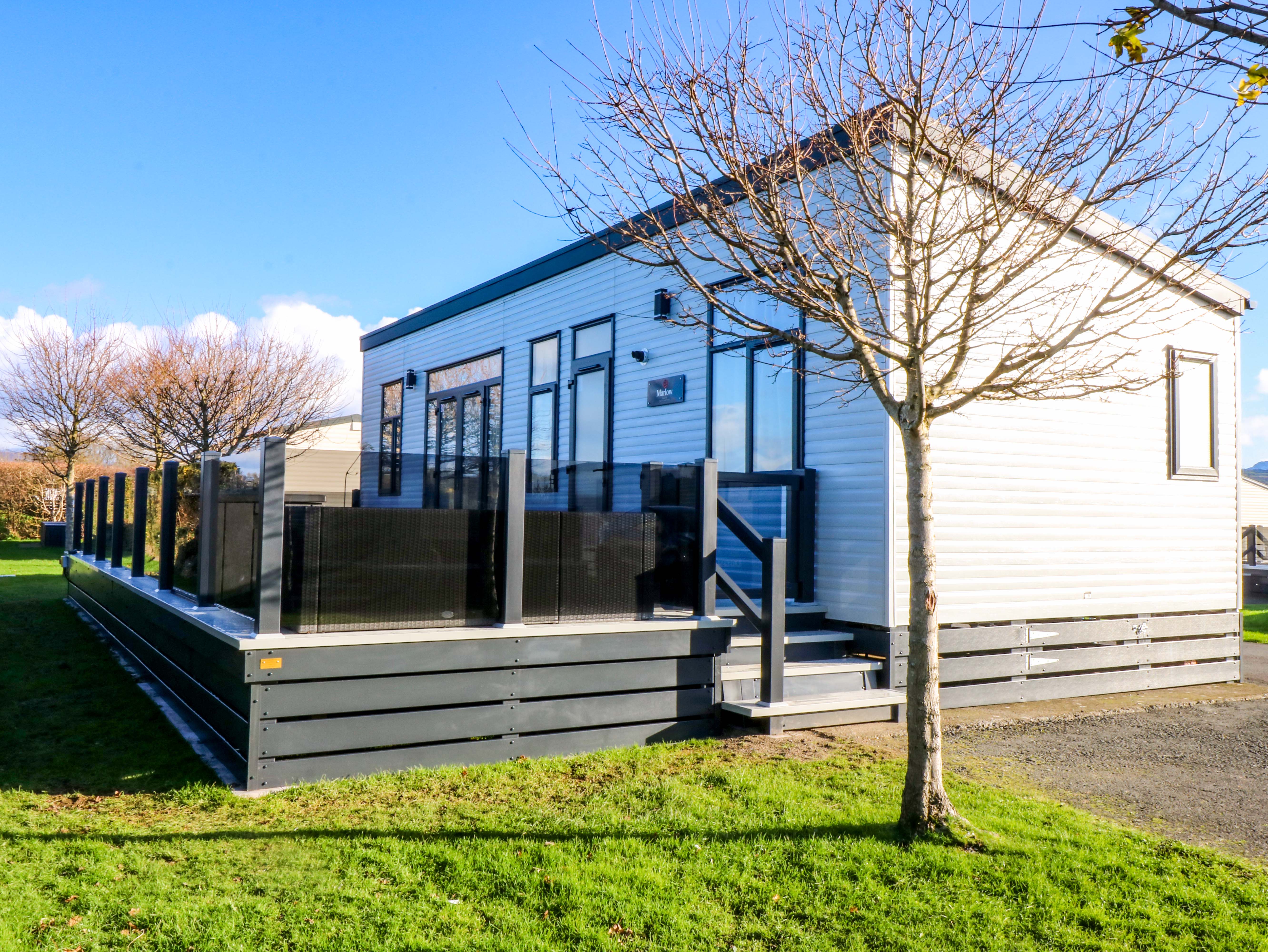 Gas central heating. Gas oven and hob, microwave, fridge, kettle, toaster. TV, WiFi. Fuel and power inc. in rent. Bed linen and towels inc. in rent. Travel cot and highchair available. Offroad parking for two cars, with further parking on site. Electric Vehicle charging point on site (please refrain from using the property as a charging point), where additional fees will apply. Decked area with rattan furniture and hot tub. Sorry, no pets and no smoking. Shop 3 miles, pub 0.1 miles. Note: Steps up to the property, please take care. Note: The pub is located on-site. On-Site facilities include: shared laundrette with washing machine and tumble drier, clubhouse with entertainment, shared TV room, shared games room, children's play area. Shared heated swimming pool, Note: On-site pool opens from May to September. Please note: access to the park will not be granted before the check-in time.