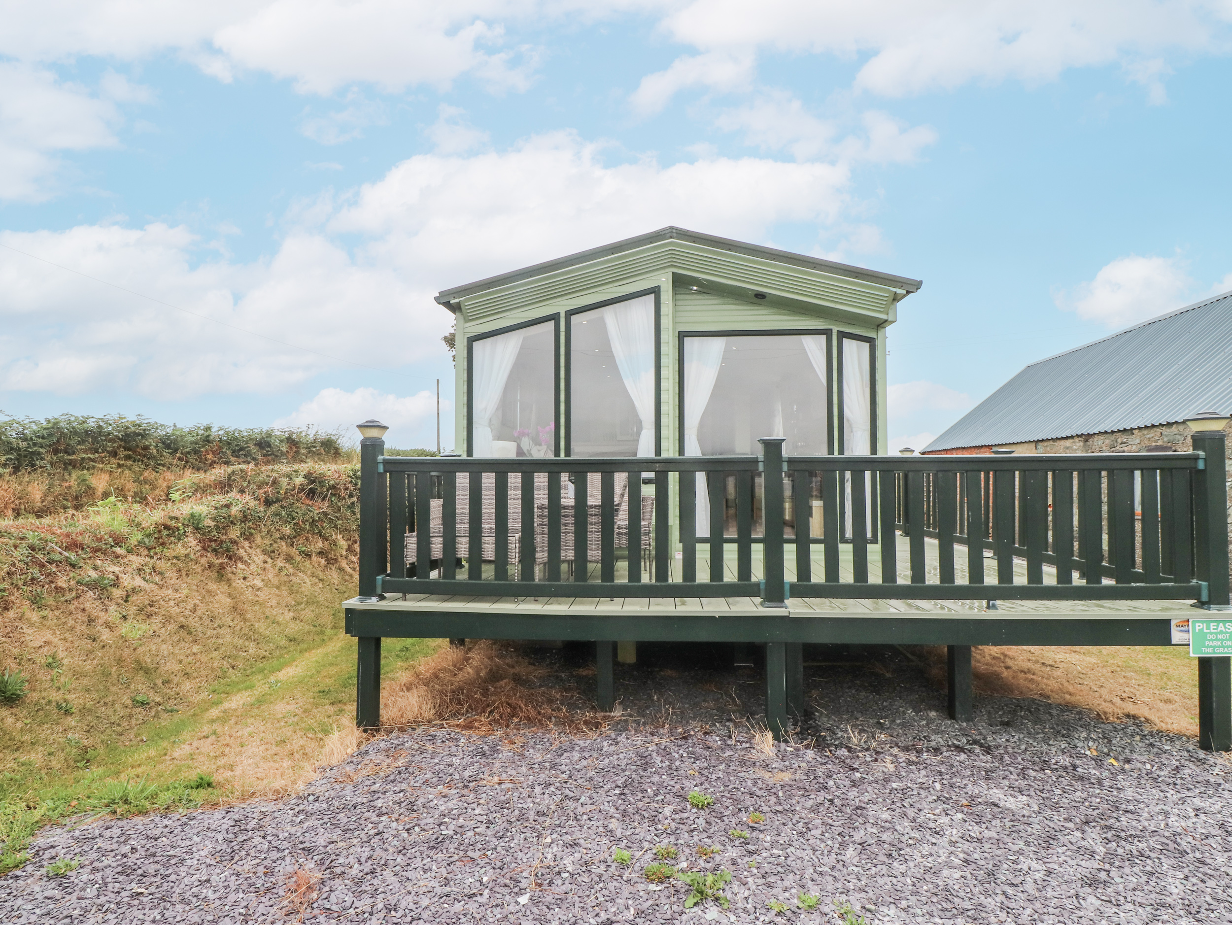 Bryncrin, a single-storey charming static caravan, consists of a kitchen with fridge, freezer, coffee machine, kettle, gas oven, and hob, toaster, and microwave, a dining room with dining seating, and a sitting room with TV and electric fire. The bedrooms consist of a double with en-suite and twin. There is a shower room with walk-in shower, basin, and WC. WiFi, fuel, power, bed linen, and towels are included in the rent. Outside, there is an enclosed decking with furniture and hot tub to the rear and off-road parking available. Sorry, no pets and no smoking. All of this and so much more with a stay at the welcoming Bryncrin.Note: this property has a Good Housekeeping Bond of 250GBP